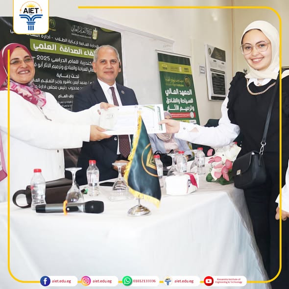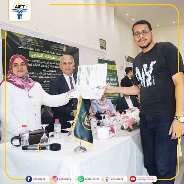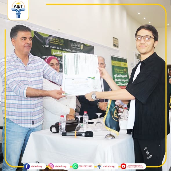 عقد مجلس إدارة معهد الإسكندرية العالي للهندسة والتكنولوجيافي إنجاز يُضاف إلى سجل تفوق طلاب معهد الإسكندرية العالي للهندسة والتكنولوجيا، حقق طلابنا مراكز متقدمة ومشرفة في فعاليات دوري المعلومات العلمي ومسابقة الأبحاث العلمية، وذلك خلال لقاء الصداقة العلمي لمنطقة قطاع غرب الدلتا الذي أُقيم بالمعهد العالي للسياحة والفنادق وترميم الآثار بأبو قير في الفترة من 28/10/2025 وحتى 30/10/2025، تحت إشراف إدارة النشاط العلمي بالإدارة العامة لرعاية الطلاب. نتائج دوري المعلومات العلمي: • المركز الأول: الطالب حسين أحمد حسين عبد القادر – الفرقة الرابعة، قسم هندسة الميكاترونيات. • المركز الثاني: الطالب طارق محمد مصطفى عبد الجليل – الفرقة الرابعة، قسم هندسة الإلكترونيات والاتصالات . نتائج مسابقة الأبحاث العلمية: • المركز الثاني: الطالب حسين أحمد حسين عبد القادر – الفرقة الرابعة، قسم هندسة الميكاترونيات . • المركز الثالث: الطالب إبراهيم محمد صبري هلال أحمد على الخواصه – الفرقة الرابعة، قسم هندسة الميكاترونيات. • المركز الخامس: الطالبة آية محمد أحمد عبد المقصود جاب الله – الفرقة الثانية، قسم هندسة الحاسبات . كل التهنئة لطلابنا المتميزين الذين شرفوا المعهد بأدائهم الرائع وتميزهم العلمي. مع خالص التمنيات بمزيد من النجاحات والإنجازات في المحافل القادمة .