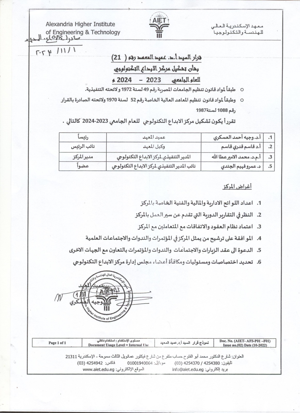 Innovation and Entrepreneurship Center | Alexandria Higher Institute for Engineering and Technology | AIET | www.aiet.edu.eg