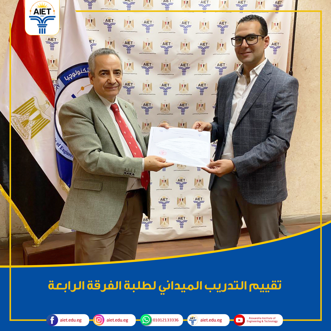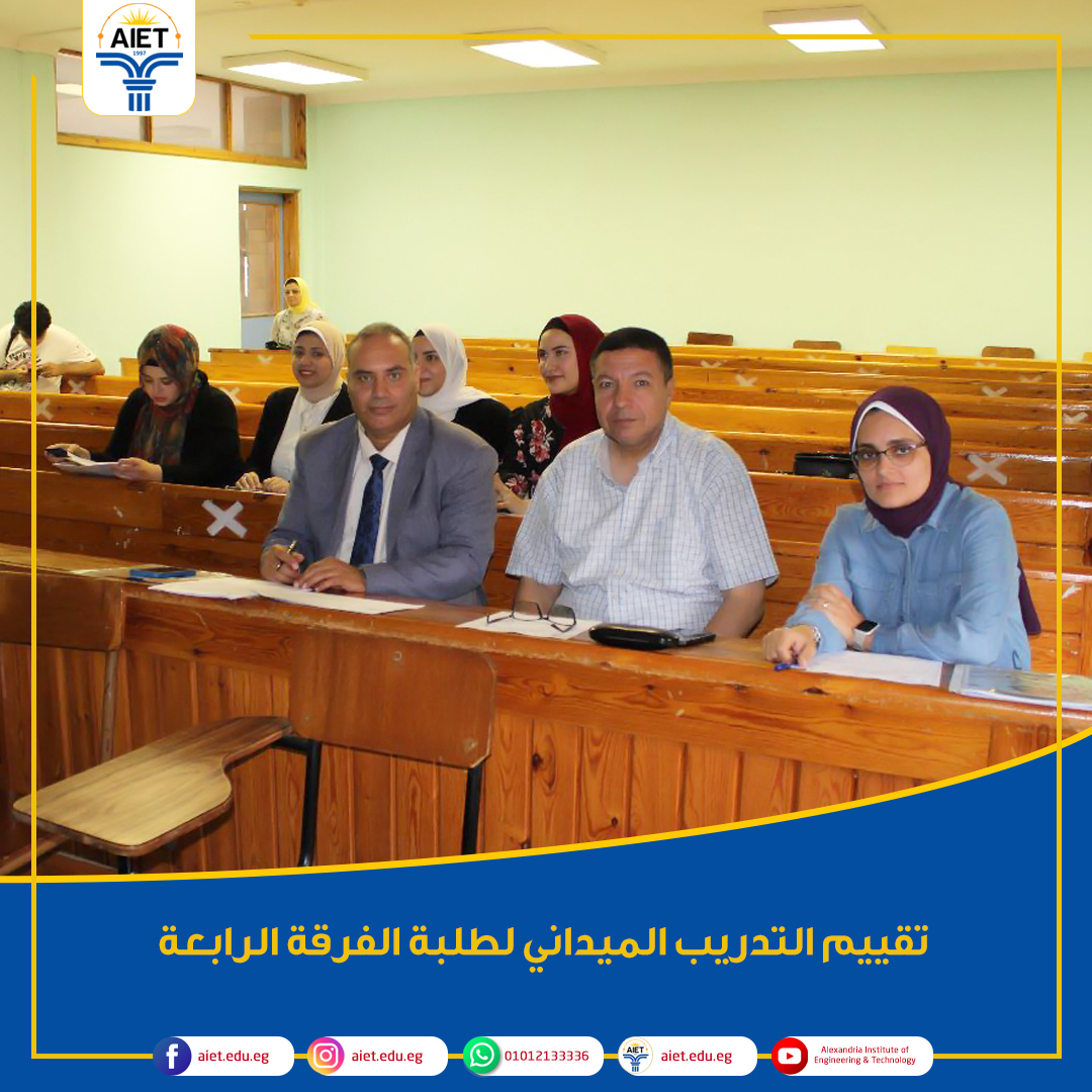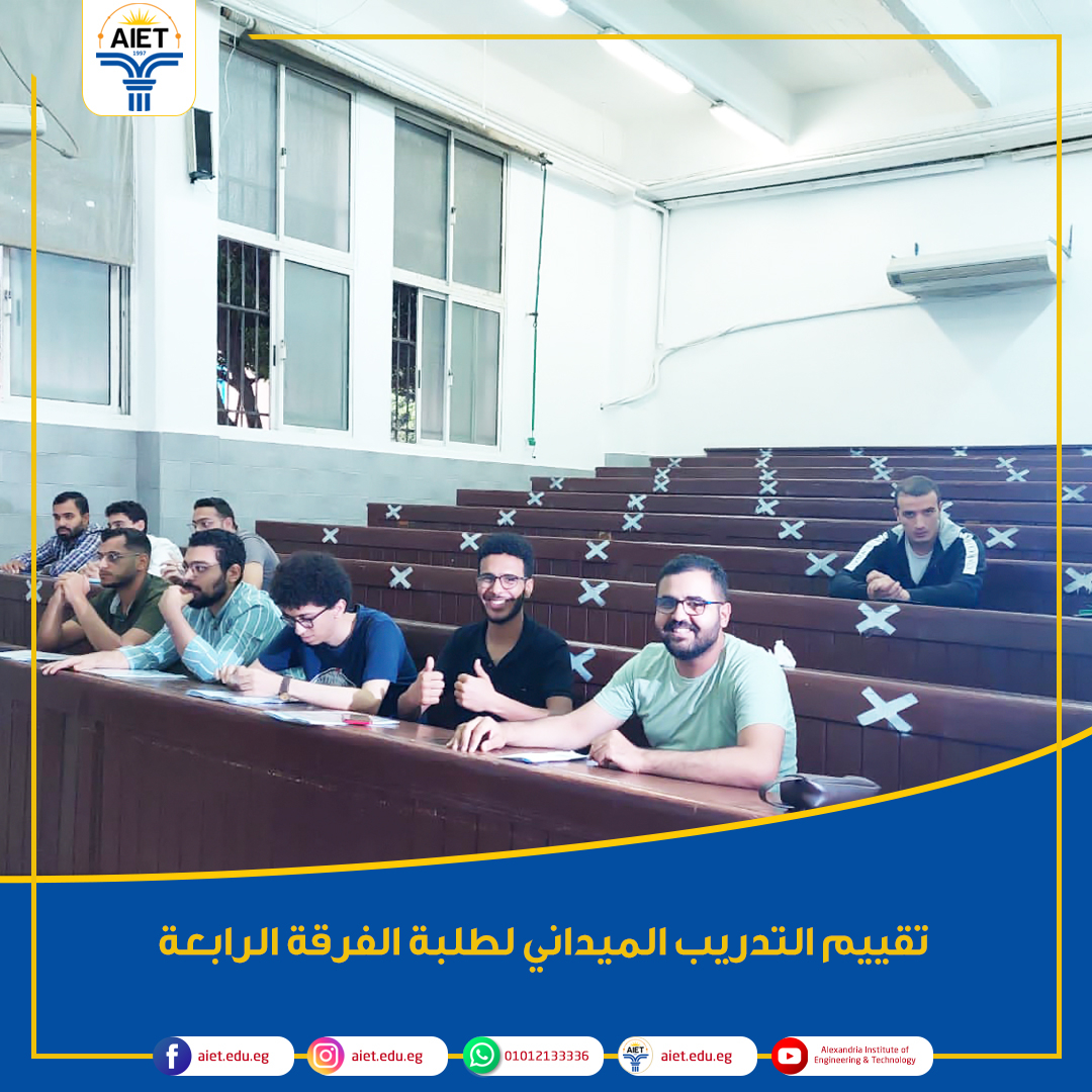 في إطار حرص معهد الإسكندرية العالي للهندسة والتكنولوجيا على تحقيق أقصى إستفادة من الدورات التدريبية التي يحصل عليها الطالب أثناء دراسته فقد تم تقييم التدريب الميداني الصيفي لجميع طلاب الفرقة الرابعة والذين تخرجوا هذا العام عن جميع الفترات التدريبية الإجبارية التي حصلوا عليها أثناء الدراسة بالمعهد وقد تم دعوة لفيف من رجال الصناعية للمشاركة في عملية التقييم بالإضافة إلى أعضاء هيئة التدريس والهيئة المعاونة بالمعهد