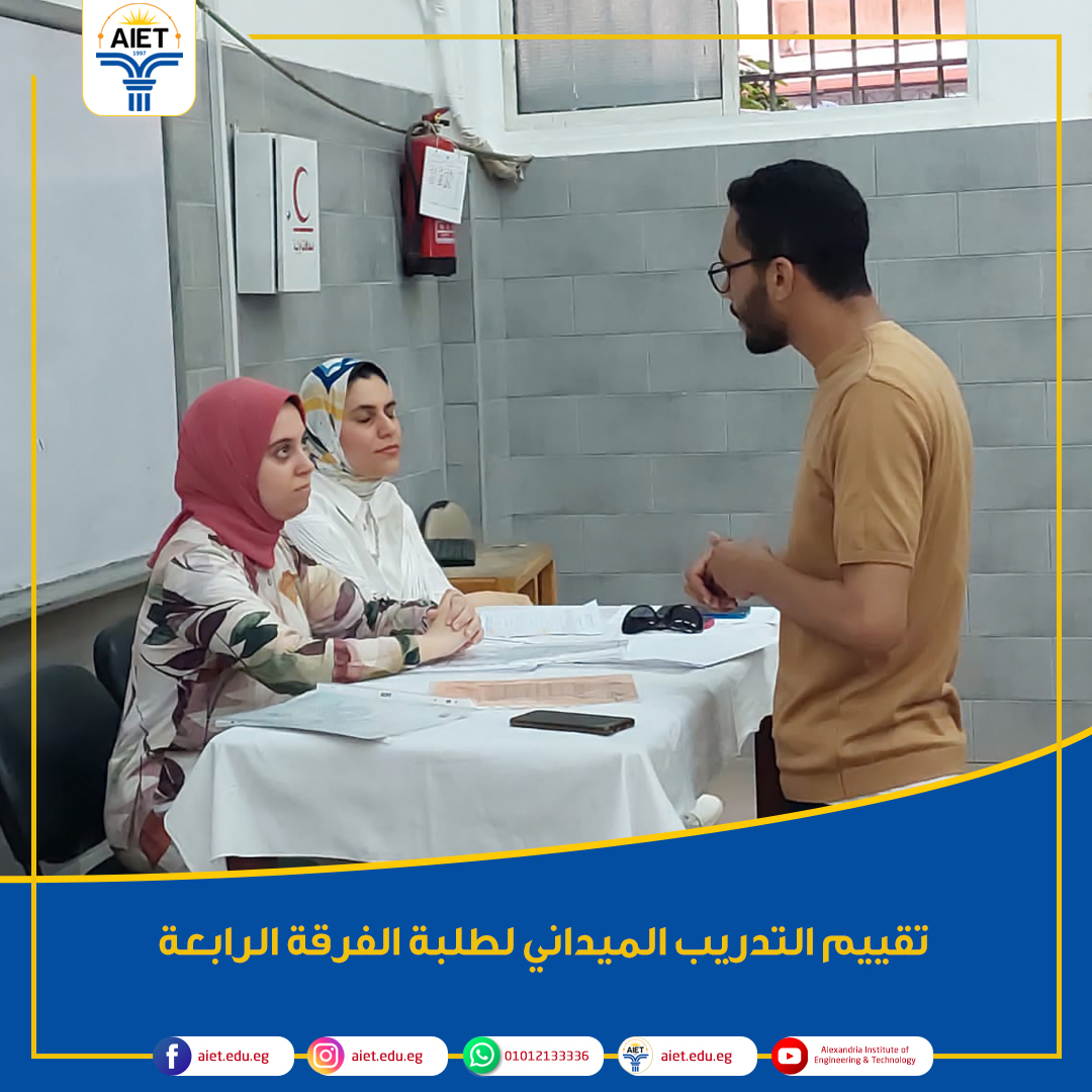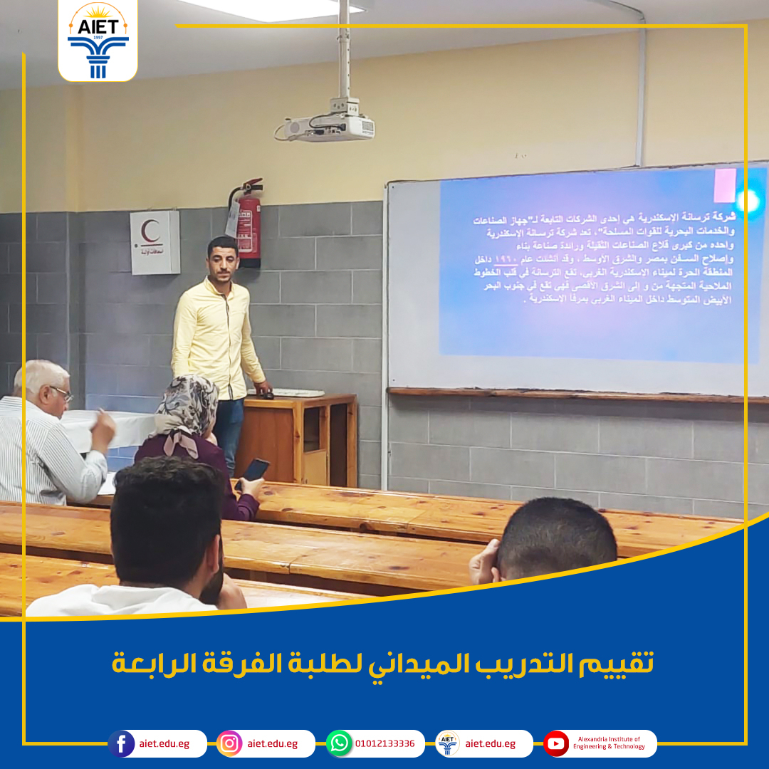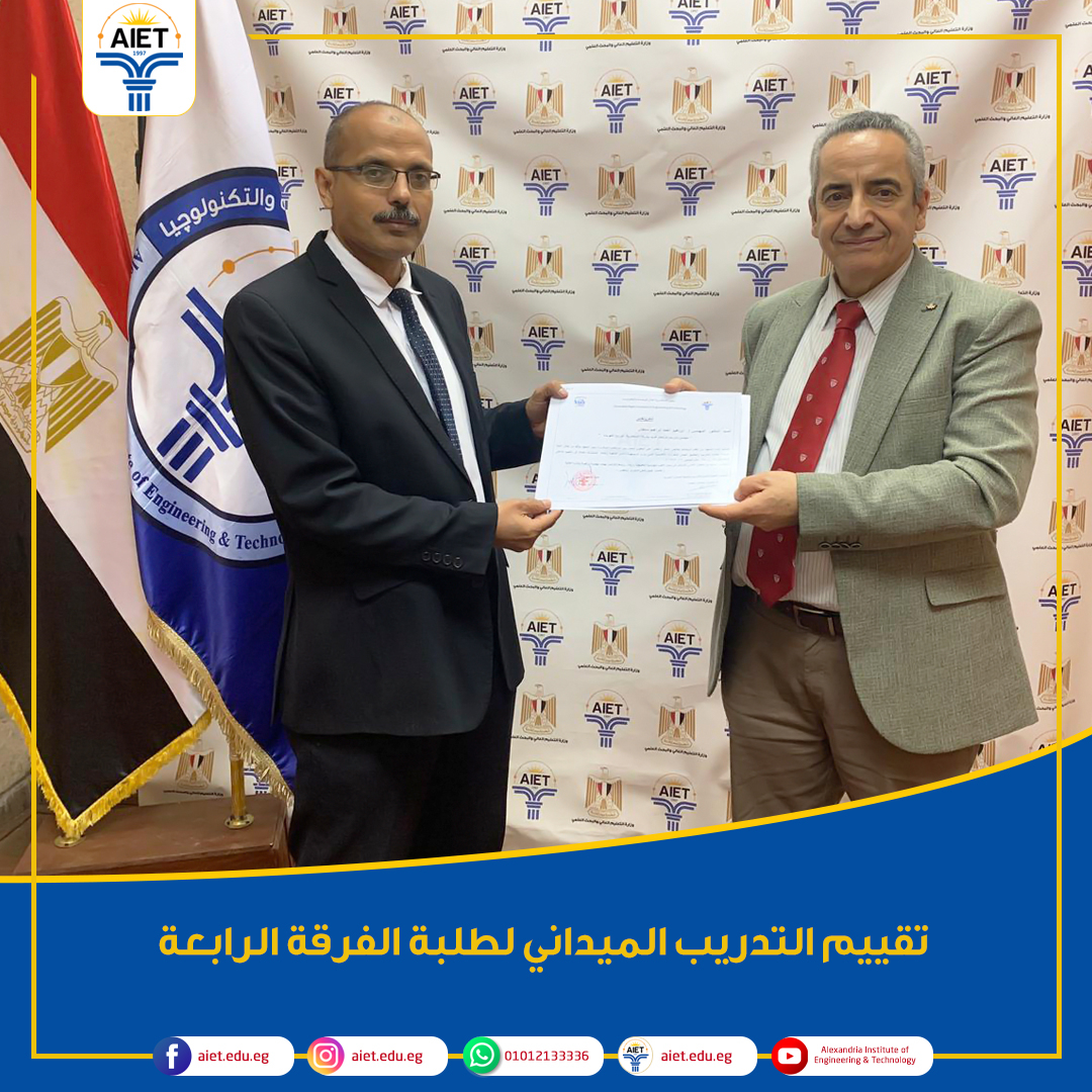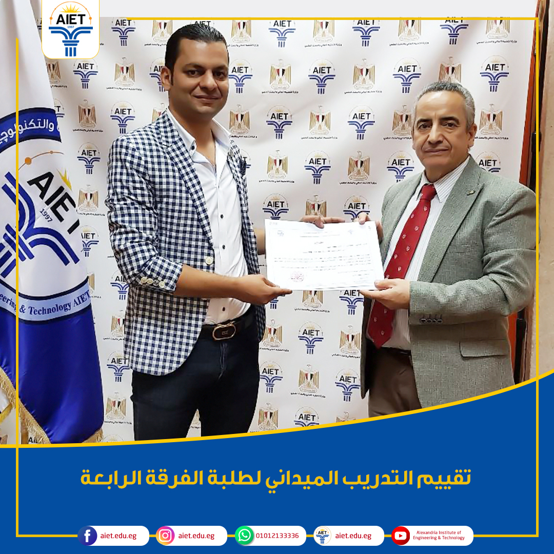 في إطار حرص معهد الإسكندرية العالي للهندسة والتكنولوجيا على تحقيق أقصى إستفادة من الدورات التدريبية التي يحصل عليها الطالب أثناء دراسته فقد تم تقييم التدريب الميداني الصيفي لجميع طلاب الفرقة الرابعة والذين تخرجوا هذا العام عن جميع الفترات التدريبية الإجبارية التي حصلوا عليها أثناء الدراسة بالمعهد وقد تم دعوة لفيف من رجال الصناعية للمشاركة في عملية التقييم بالإضافة إلى أعضاء هيئة التدريس والهيئة المعاونة بالمعهد