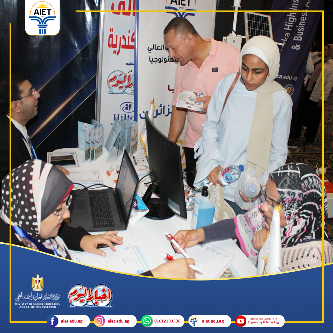 شارك معهد الإسكندرية العالي للهندسة والتكنولوجيا في معرض التعليم العالي الذي نظمته مؤسسة أخبار اليوم للعام الثاني على التوالي في الإسكندرية في فندق هيلتون جرين بلازا. افتتح المعرض السيد اللواء/ محمد الشريف محافظ الإسكندرية والسيد الأستاذ الدكتور/ عبد العزيز قنصوة رئيس جامعة الإسكندرية وسعادة الأستاذ/ مزيد بن محمد الهويشان قنصل عام المملكة العربية السعودية، وقد رحب بسيادتهم في جناح المعهد الدكتور/ محمد عبد الفتاح رجب رئيس مجلس الإدارة وقدم نبذة عن المعهد ونشأته وأقسامه والاعتمادات التي حصل عليها وشراكاته مع الصناعة ثم تم عرض مجموعة من المشروعات المتميزة التي قام الطلاب بتصميمها وبتنفيذها. ثم استقبل فريق المعهد عدداً من السادة الزوار من الطلاب وأولياء الأمور لتعريفهم بالمعهد والإجابة عن كل أسئلتهم على مدار اليوم وذلك حتى اختتام المعرض في السابعة مساءً.