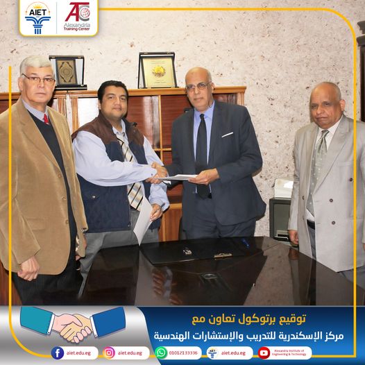 في إطار دعم الشراكات وتقوية العلاقات مع شركاء الصناعة فقد تم بحمد الله توقيع بروتوكول تعاون مع "مركز الاسكندرية للتدريب والخدمات الهندسية" المعتمد والشريك للنقابه العامه للمهندسين فى القاهرة والنقابه الفرعيه للمهندسين بالاسكندرية وعضو الجمعية الدولية EduNet World Association وجدير بالذكر أن هذا البروتوكول هو الخامس والعشرين في سلسلة بروتوكولات التعاون بين المعهد وشركاء الصناعة لتدريب الطلاب وربط الجانب العلمي بالجانب التطبيقي حضر مراسم التوقيع مهندس إستشارى / عبد الله أحمد شوقي رئيس مجلس إدارة المركز والأستاذ الدكتور/ وجيه أحمد العسكري عميد المعهد والسيد الدكتور/ محمود رمضان محمود مستشار العميد لشئون التدريب وقد أعرب الدكتور / وجيه العسكري عن سعادته بهذا التعاون وتطلعه لتعاون مثمر في المستقبل.