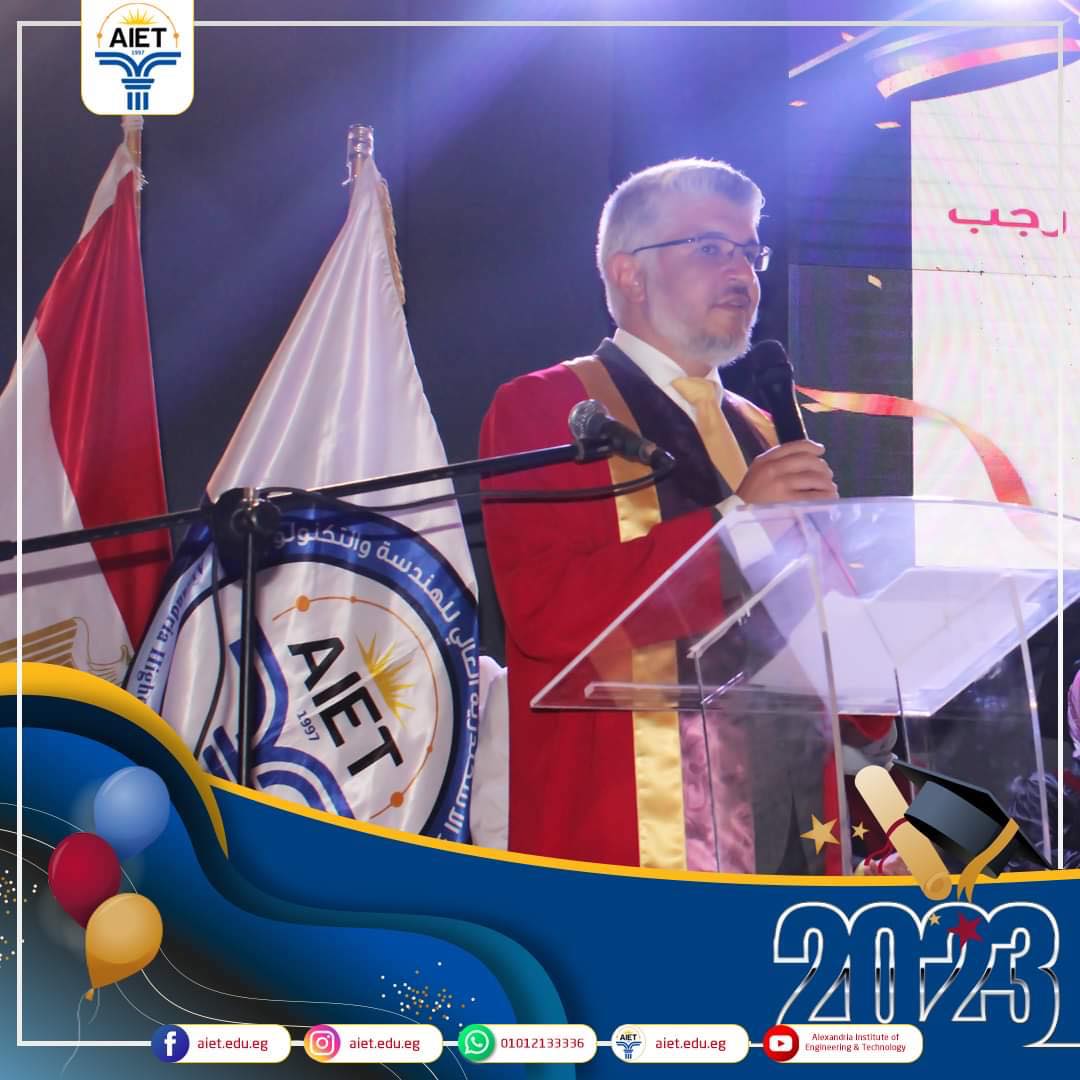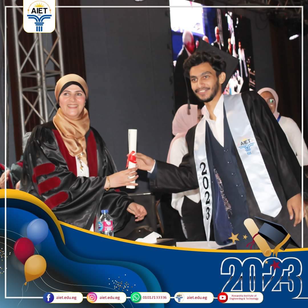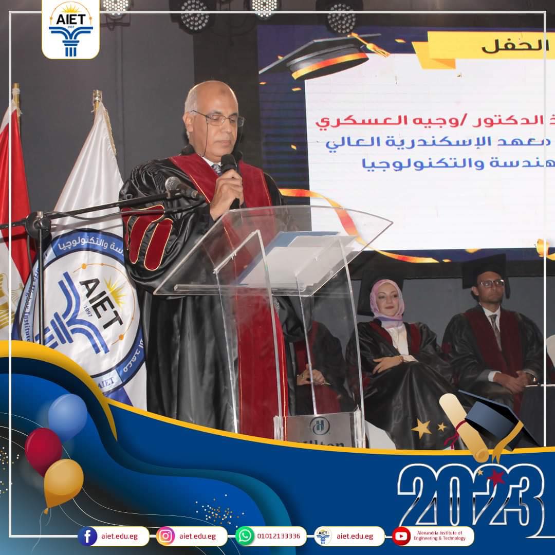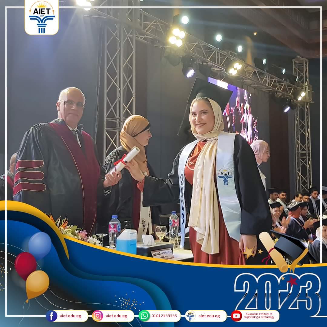 في أجواء من السعادة والفرحة أقام معهد الإسكندرية العالي للهندسة والتكنولوجيا - بحمد الله - حفل تخرج دفعة 2023/2022 في قاعة الزهراء بفندق هيلتون جرين بلازا وهي الدفعة الثانية والعشرين من الحاصلين على بكالوريوس الهندسة من الأقسام المختلفة بحضور العديد من الشخصيات العامة والبارزة من المجتمع السكندري ومختلف المؤسسات. بدأ الحفل بكلمة الخريجين ألقتها المهندسة/ يارا أيمن حيدق هنأت فيها زملائها على إتمام مشوارهم التعليمي بنجاح رغم المصاعب التي واجهتهم وانتقالهم إلى مرحلة جديدة من حياتهم. وألقى الأستاذ الدكتور/ وجيه العسكري عميد المعهد كلمة رحب فيها بالحاضرين وأعرب عن سعادته بحضوره هذا الحفل متمنياً للخريجين التوفيق في حياتهم القادمة. وألقى السيد اللواء دكتور/ وائل مختار نائب مساعد مدير الأكاديمية العسكرية (والذي احتفل أمس بتخرج كريمته من المعهد) كلمة حول دور الهندسة في المشروعات القومية كما هنأ أولياء الأمور على وجه الخصوص بهذه اللحظة والتي طال انتظارهم لها. وأعرب الدكتور/ محمد عبد الفتاح رجب رئيس مجلس إدارة المعهد عن سعادته البالغة لحضور هذا الحفل موضحاً للخريجين ضرورة الإستمرار في السعي لتحقيق النجاح في الامتحانات القادمة في الحياة موجها شكره إلى كل من ساهم في وصول هؤلاء الخريجين إلى هذه اللحظة التي تمنوها منذ التحاقهم بالمعهد. ثم ردد الخريجون قَسَم المهنة الهندسية واختتم الحفل بتوزيع الشهادات ورفع الكابات والتقاط الصور التذكارية. ألف مبروك