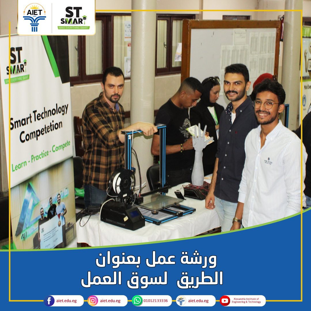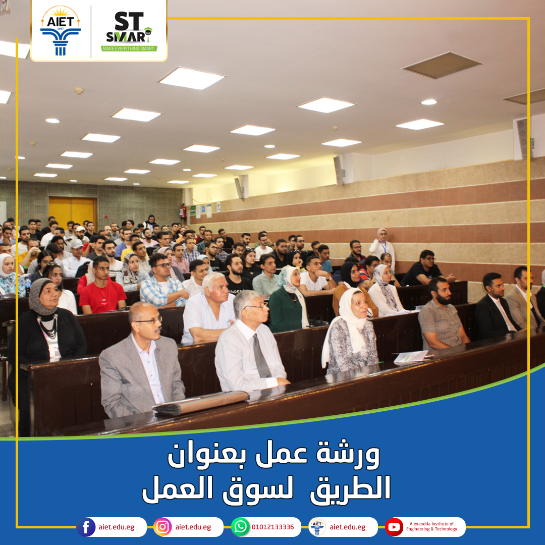 نظم معهد الإسكندرية العالي للهندسة والتكنولوجيا ورشة عمل بعنوان "الطريق إلى سوق العمل " وذلك في إطار تأهيل الطلاب وخريجي المعهد لسوق العمل. أقيمت الورشة برعاية شركة ST SMART وهي أحد شركاء الصناعة للمعهد . وتم على هامش الورشة تقديم نماذج مشرفة من فريق العمل بالشركة من خريجي المعهد وعرض خبراتهم العملية مشيرين إلى أهمية التدريب الميداني في صقل خبرات الطلاب قبل تخرجهم وقد أثنوا على ما يقدمه المعهد من فرص تدريبية لطلابه ساعدت في تأهيلهم لسوق العمل.