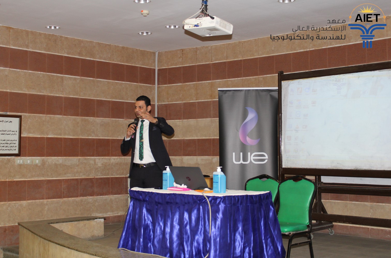 في إطار فاعليات أنشطة وحدة التدريب بمعهد الإسكندرية العالي للهندسة والتكنولوجيا ولمواكبة أحدث التطورات بالتعاون مع الشركة المصرية للاتصالات WE - أحد شركاء المعهد - فقد تم عقد محاضرة تعريفية بعنوان (مراحل تطور شبكات المحمول وصولا الي الجيل الخامس 5G) قام بإلقائها المهندس /أحمد محمد عطية مدير مركز تحكم بالشركة والمحاضر المعتمد دوليا وذلك بمدرج شبانة في المعهد.